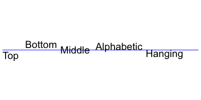 textBaseline = value基线对齐选项. 可选的值包括:top,hanging,middle,alphabetic,ideographic,bottom。默认值是alphabetic。 -